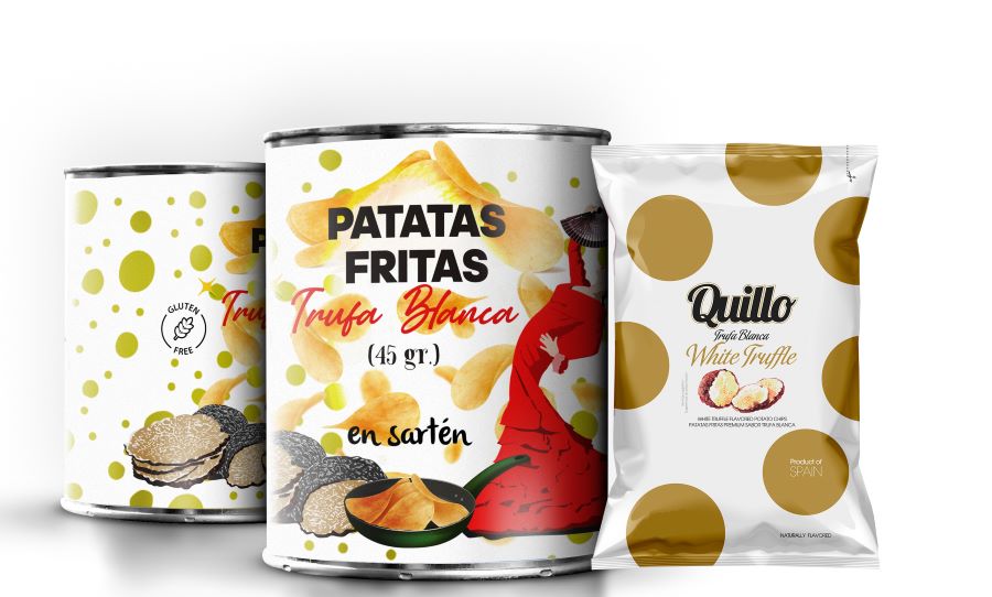 Lata PERSONALIZADA con Patatas Fritas Trufa Blanca Quillo de 45 gramos.